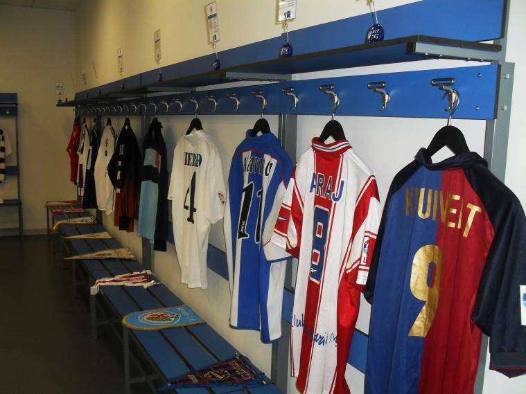 Exposición de camisetas históricas en el vestuario visitante